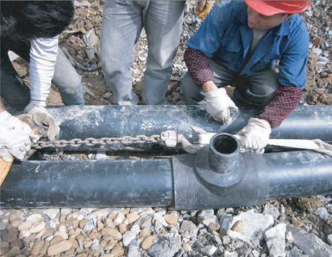 鋼絲網(wǎng)骨架增加塑料復(fù)合管施工現(xiàn)場