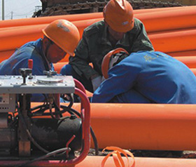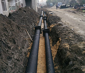 鋼絲網(wǎng)骨架增加塑料復(fù)合管施工現(xiàn)場